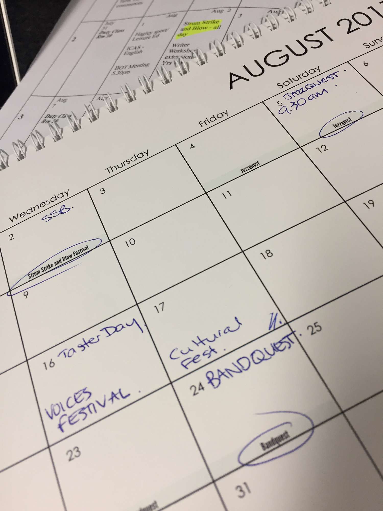 Here are the main music dates for Term 3 for school music groups: choir, orchestra, jazz band, ukuleles, marimbas and recorders.