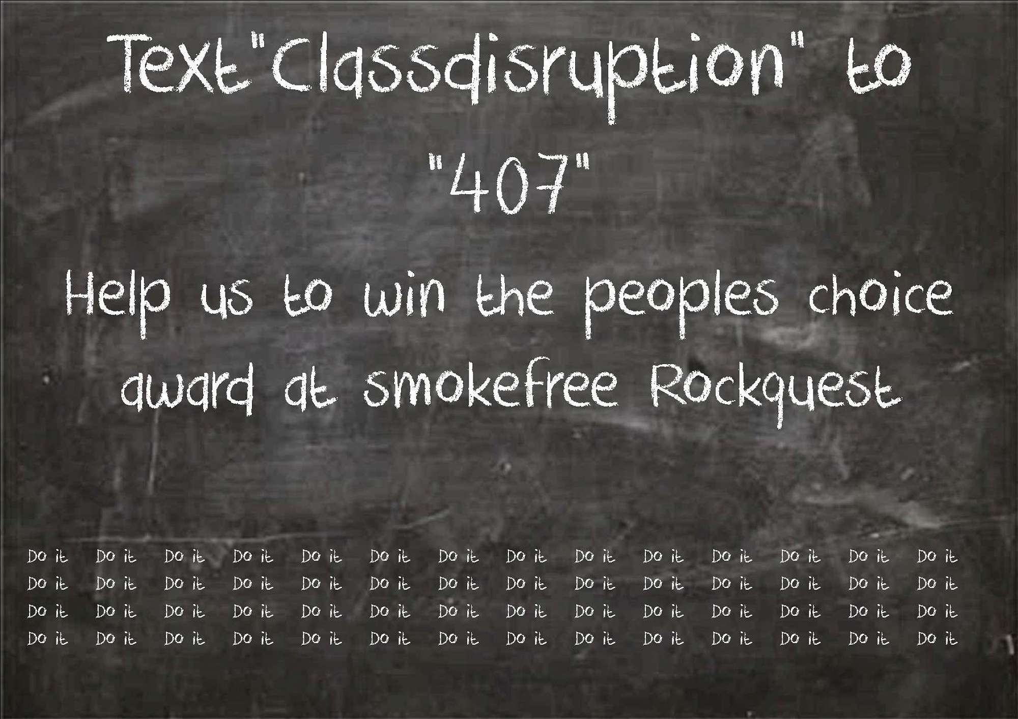 Support Jacob and Hiromu and the Chissy rock band “Class Disruption” by PEOPLE’S CHOICE TXT VOTING before June 29th. Text classdisruption (no spaces) to 407 to vote. Only one counted per phone so tell everyone! Costs 20c.You can also support the band by going to the rockquest Regional Finals and cheering them on on Friday June 29th. Tickets $10. 7pm-9.40pm at the Foundry on Ilam Road.